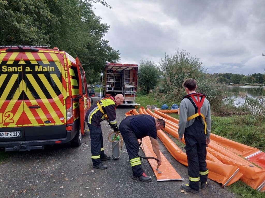 Da die freiwillige Feuerwehr Sand am Main der Ölwehr-Stützpunkt des Landkreis Haßberge ist, setzten die Sander Kameraden die notwendigen Maßnahmen um.