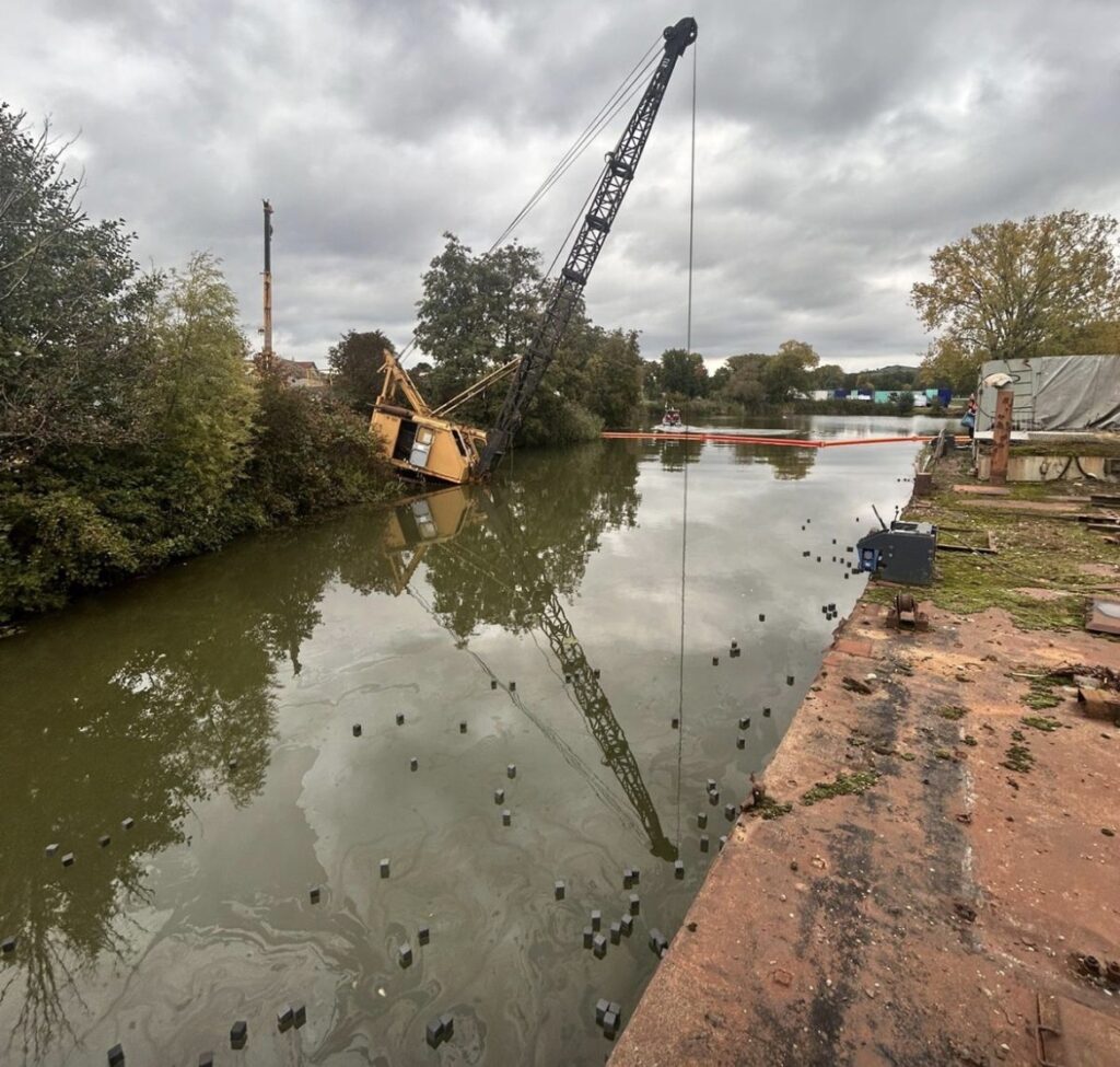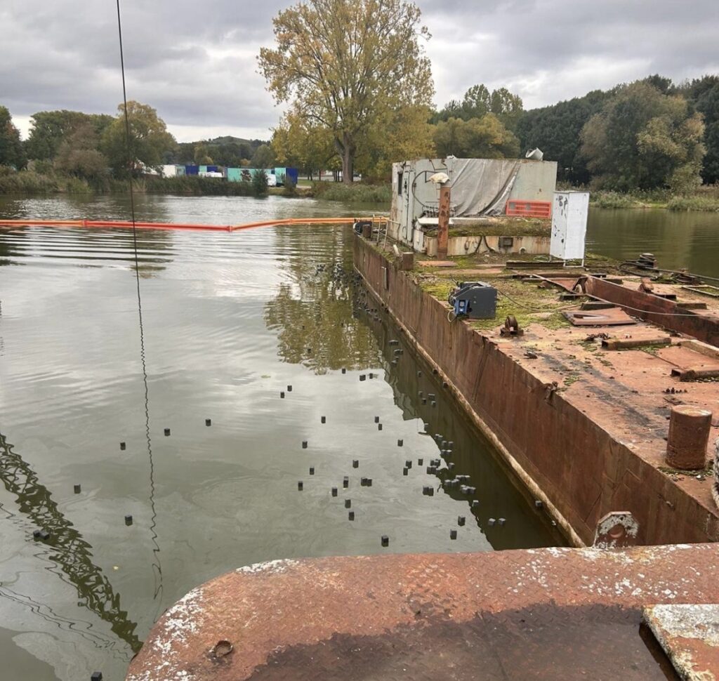 Infolge eines havarierten Seilbagger kam es im Uferbereich, zu einer Gewässerverunreinigung durch ausgetretene Betriebsstoffe.