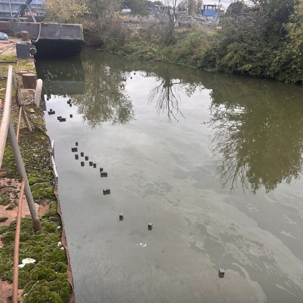 Das so erfolgreich eingegrenzte Ölwassergemisch konnte im weiteren Verlauf mittels schwimmfähigen Öl-Bindemittel (Öl-Ex-Würfel) gebunden werden.