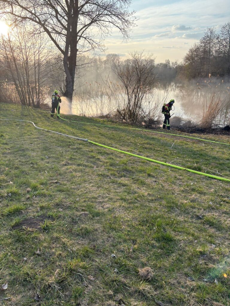 Gestern wurden wir um 17:18 Uhr zu einem Flächenbrand B1 alarmiert. Am Siedlerspielplatz zündelten Kinder, wodurch Schilf in Brand geriet. Durch das schnelle Eingreifen der 15 Einsatzkräfte konnte eine Ausbreitung des Brandes verhindert werden. Nach rund 40 Minuten war der Einsatz für uns beendet.
